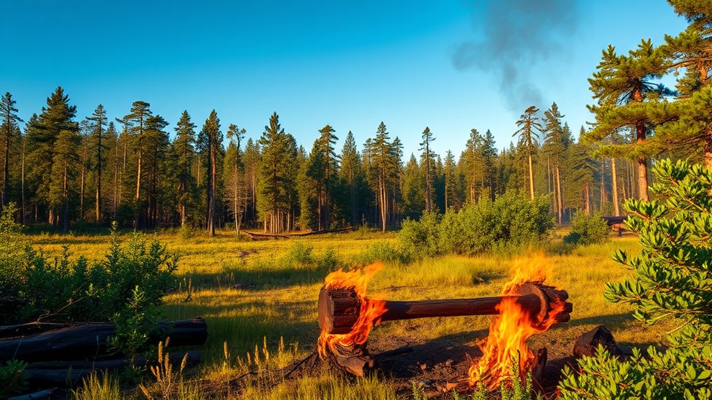 Indigenous communities have used controlled, intentional burns called cool burning for generations to manage landscapes and boost biodiversity. By carefully timing and planning these fires, they promote diverse habitats, support fire-adapted species, and keep ecosystems healthy. These practices also reduce the risk of dangerous wildfires and improve soil fertility. If you look further, you’ll discover how these ancient methods can inform modern fire management and protect ecosystems for the future.