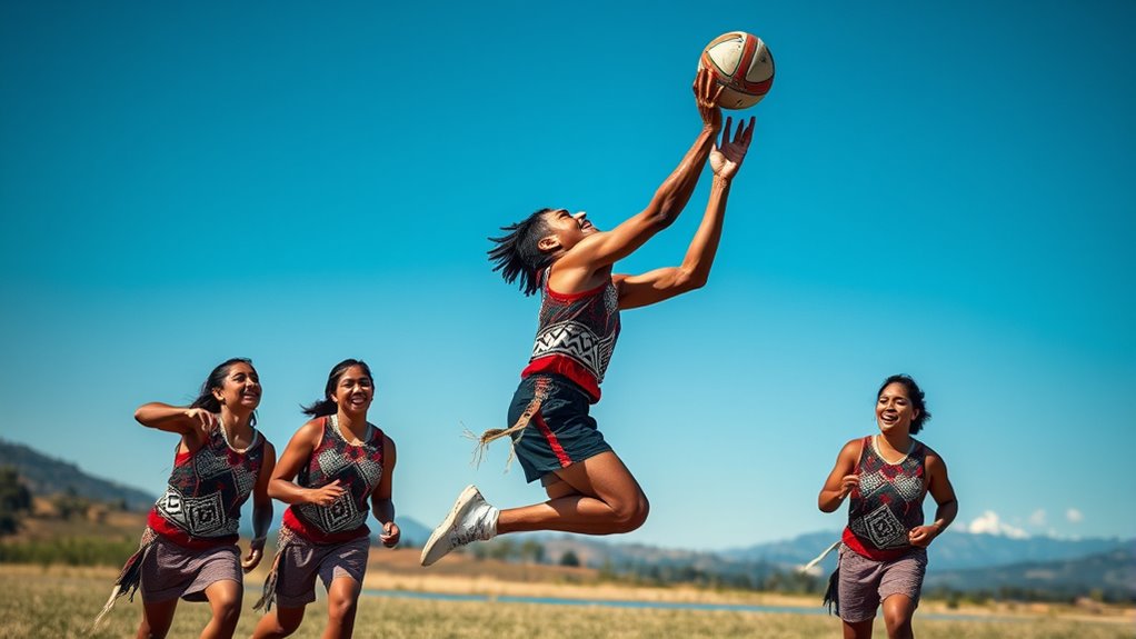 You’ll find that some mainstream sports have integrated traditional games through cultural integration efforts, honoring indigenous roots. For example, lacrosse, originally a traditional sport among Native Americans, is now a popular competitive sport nationwide. These integrations help preserve cultural traditions while promoting diversity. By recognizing traditional games within mainstream sports, communities celebrate indigenous heritage and foster understanding, creating a richer, more inclusive sporting landscape.