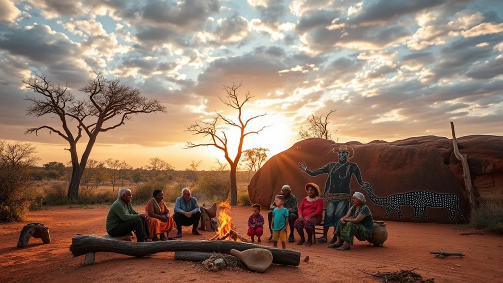 The Murrinh-Patha language thrives in the Northern Territory because the community actively promotes its use through schools, cultural events, and elders passing down traditions. Technology also plays a crucial role, with apps and media making the language accessible to younger generations. These efforts foster pride and keep the language relevant today. To discover how this community sustains its vibrant language, explore the innovative ways they honor their cultural identity.