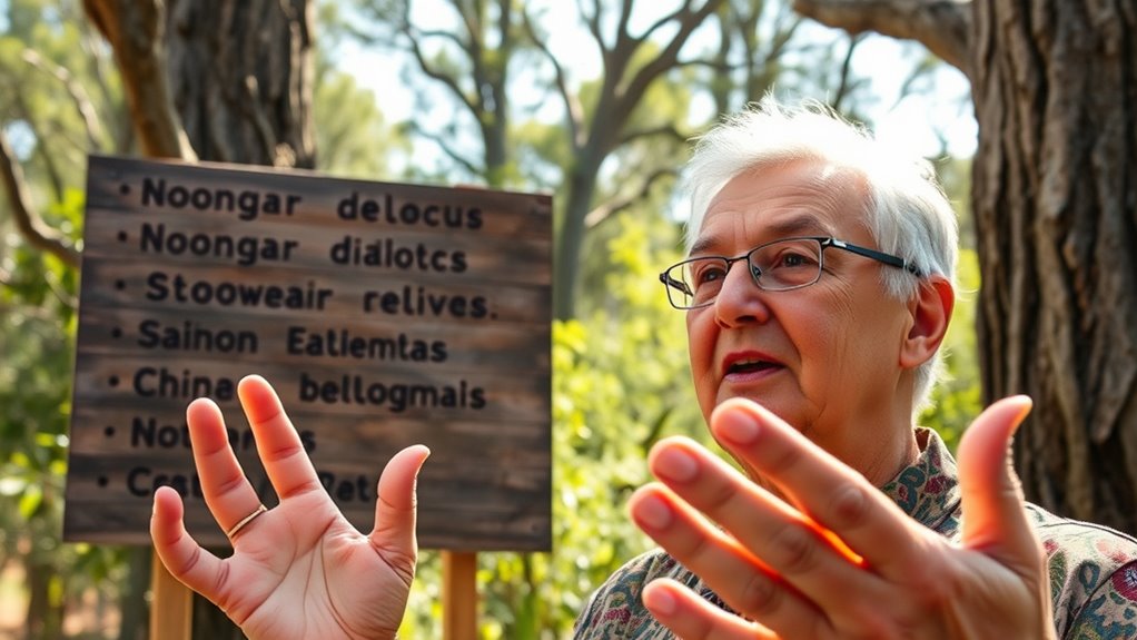 You can explore the Noongar language, which includes several dialects, as an essential part of Indigenous culture. Revival efforts focus on community-led initiatives, storytelling, and practicing traditional practices like ceremonies and land activities to keep the language alive. Learning from elders and engaging in cultural events make the language relevant today. If you keep exploring, you’ll discover how these efforts sustain and celebrate Noongar’s rich heritage and ongoing evolution.