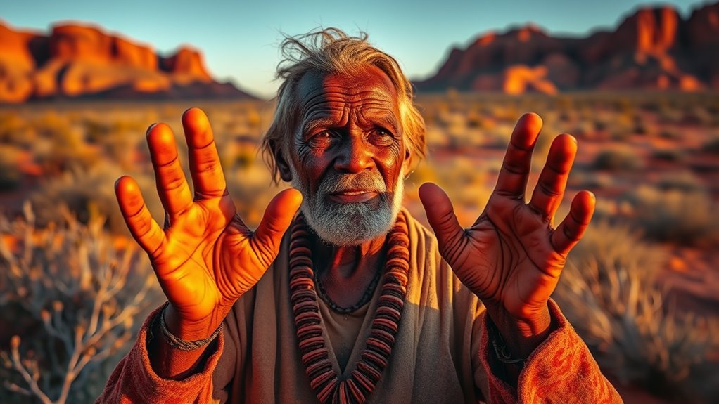 Furthermore, gesture communication isn’t static; it evolves with the community while still remaining a core part of their cultural expression. Each gesture carries layers of meaning that can be understood only within the context of Walpiri society. As you learn about this tradition, you’ll see how it reinforces cultural values, spiritual beliefs, and social hierarchies. Additionally, the use of gesture language highlights the importance of non-verbal communication in maintaining cultural continuity and adapting to changing social environments. In summary, the Walpiri’s hand talk isn’t just a communication tool—it’s a dynamic expression of their rich cultural identity, ensuring that their traditions endure across generations. Observing their gestures offers a profound insight into how indigenous communities preserve their unique worldview, making their cultural expression both powerful and enduring.