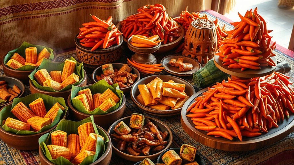 During celebrations, indigenous dishes often tell stories—about origins, migrations, or spiritual beliefs—making them more than just sustenance. They become edible history lessons that connect you to your roots. When you sit down to enjoy these foods, you’re not only nourishing your body but also affirming your cultural identity and honoring your ancestors’ wisdom. The preparation of these dishes can be a communal activity, fostering a sense of belonging and shared purpose. It’s a way to preserve cultural memory in the face of modernity, ensuring that culinary traditions remain alive and meaningful for future generations.