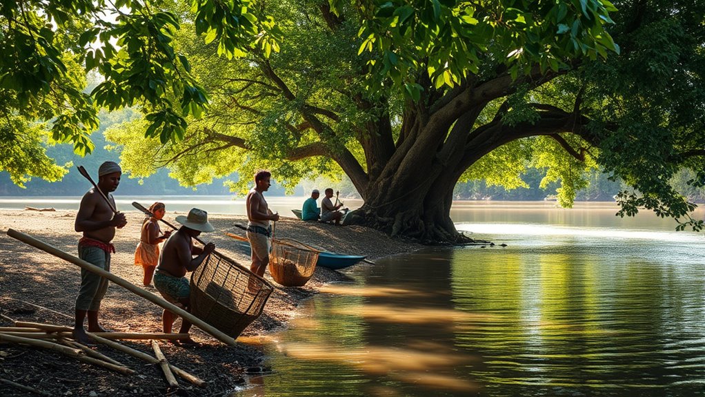 Have you ever wondered how early communities relied on nature’s resources for survival? Long before modern technology, people depended on traditional fishing and hunting methods that were sustainable and in harmony with the environment. These practices weren’t just about gathering food; they were deeply connected to the health of aquatic ecosystems and wildlife conservation. When you understand the principles behind these methods, you realize they were designed to guarantee that future generations could continue to thrive alongside nature. Many indigenous groups and ancient societies developed techniques that minimized environmental impact, recognizing that overexploitation would threaten their own survival. They knew that maintaining the balance within aquatic ecosystems was essential for sustainable food sources and the well-being of wildlife populations. Additionally, these methods often incorporated sustainable battery technologies that supported energy needs without harming the environment. Traditional fishing methods often involved selective techniques that targeted specific species without harming others. For example, using hand nets, fish traps, or spears allowed communities to catch only what they needed, avoiding unnecessary waste. Fish traps, made from natural materials like reeds or stones, often relied on the flow of water to guide fish into enclosures that could be easily harvested. These methods not only preserved fish populations but also protected the broader aquatic ecosystem by reducing bycatch and habitat destruction. Similarly, hunting practices were carefully managed, with communities setting seasonal restrictions or respecting breeding times to guarantee that animal populations remained stable. Such practices exemplify a deep understanding of wildlife cycles and the importance of conservation.