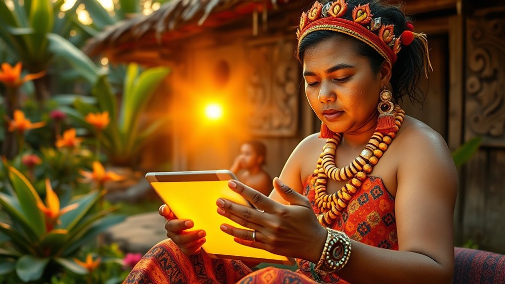 At the same time, these platforms foster narrative innovation, transforming traditional stories into dynamic, multimedia experiences. By blending images, sounds, and interactive elements, indigenous storytellers craft compelling narratives that resonate with contemporary audiences. This evolution isn’t about replacing age-old tales but enhancing them, making them more engaging and relatable in today’s digital landscape. For instance, a storyteller might combine ancestral songs with animated visuals or create virtual reality experiences that immerse viewers in cultural ceremonies. Such innovations breathe new life into ancient stories, demonstrating that tradition and modernity can coexist harmoniously. As you engage with these evolving narratives, you’re witnessing how indigenous communities adapt their storytelling methods without losing their essence, ensuring their cultural expressions remain vibrant and relevant.