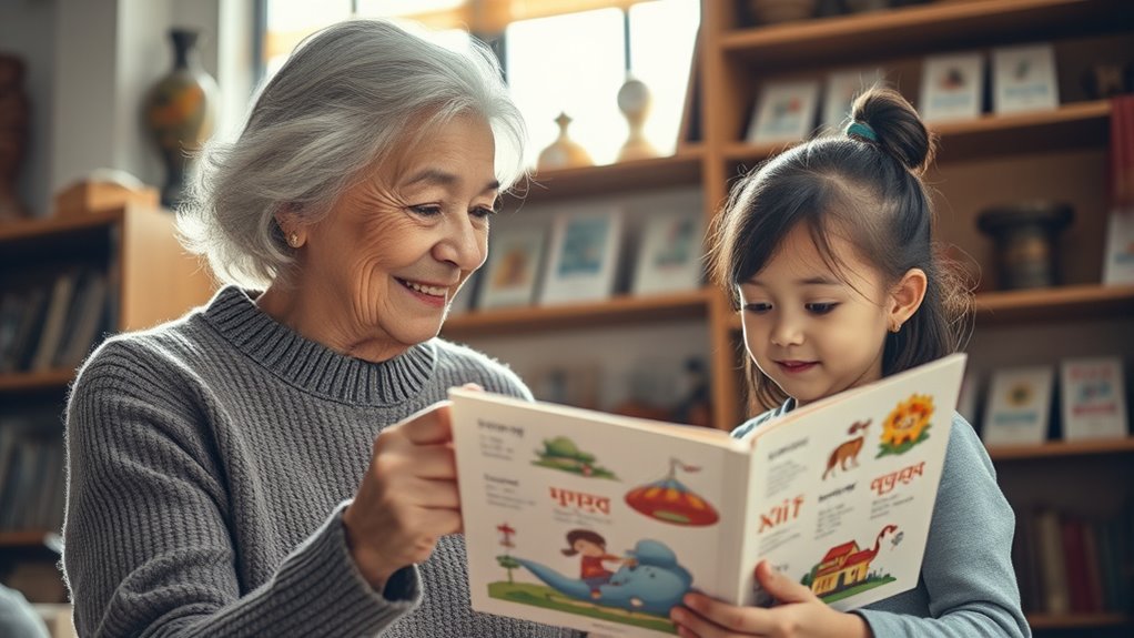 Mentorship in language learning allows elders to share their stories, traditions, and cultural knowledge directly with new generations. By passing down language through storytelling, music, and practical activities, they create authentic and memorable experiences. This process not only helps preserve the language but also strengthens community bonds and cultural identity. The benefits are mutual; elders gain fulfillment, while younger learners acquire skills and a deeper understanding of their heritage. Keep exploring to discover how this powerful exchange continues to thrive.