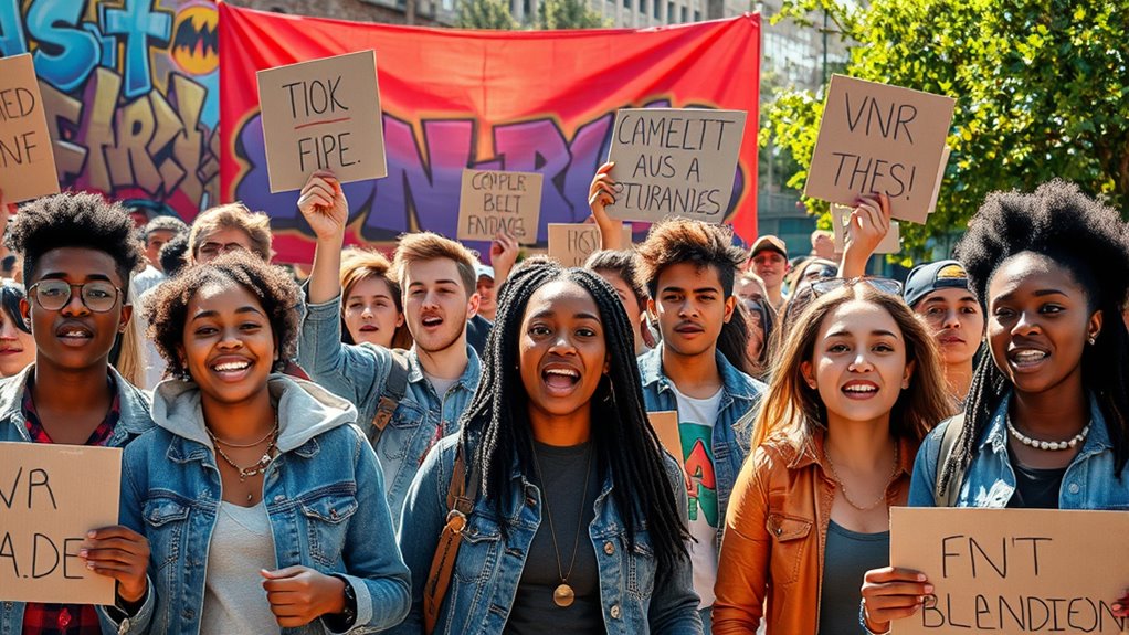 Youth language warriors are young people leading powerful revival movements that reshape how society communicates. They constantly innovate with slang, digital expressions, and memes, creating a shared identity and cultural pulse. Their influence spreads rapidly through social media, influencing shifts in mainstream language and trends. By pushing boundaries and experimenting with new ways to express themselves, they are transforming communication’s future. To discover how these young change-makers are molding society, keep exploring what drives their creative linguistic revolution.
