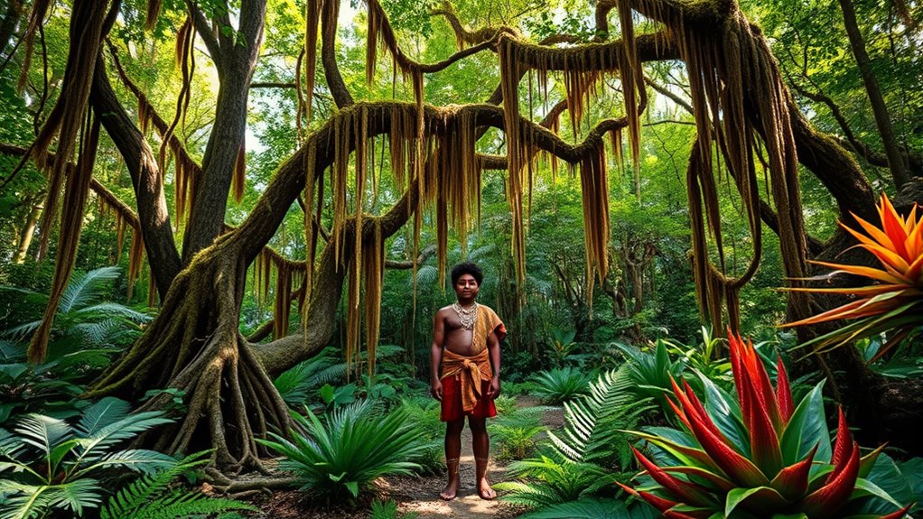 You can explore traditional healing with plants like the kurrajong, which the Kuku Yalanji use for medicinal purposes. They also rely on tea tree for its antiseptic properties and native ginger for inflammation. By practicing plant conservation, they guarantee these essential medicinal plants remain available for future generations. These plants play a critical role in maintaining health and cultural traditions, highlighting the significance of protecting rainforest biodiversity.