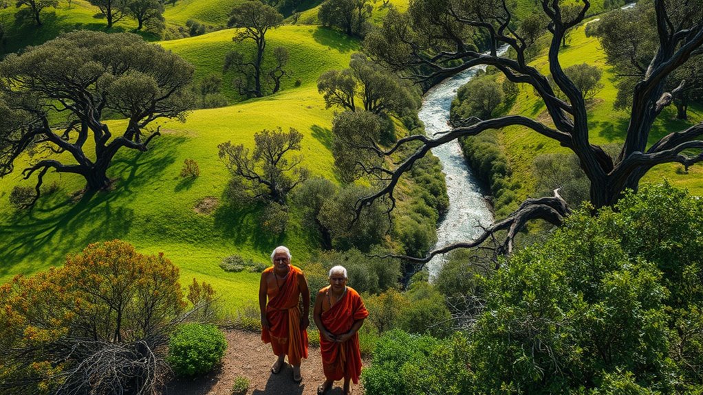 The Wurundjeri people are the traditional custodians of Melbourne’s land, with a deep spiritual and cultural connection that has lasted for tens of thousands of years. They maintain rich traditions through ceremonies, storytelling, and art, preserving their cultural heritage despite modern challenges. Their efforts focus on protecting sacred sites and asserting their rights, demonstrating resilience and pride. To understand how they sustain their traditions today, keep exploring their ongoing cultural and land initiatives.