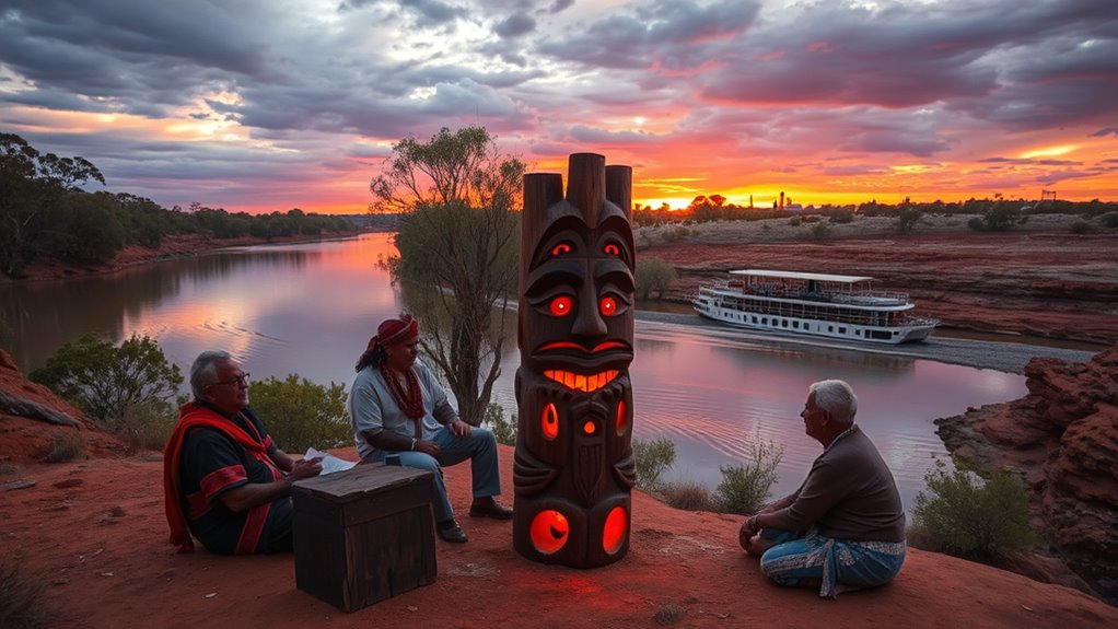 Discover the rich stories of the Yorta Yorta Nation from the Murray-Goulburn region, where traditions are alive through oral storytelling passed down for thousands of years. These stories connect you to ancestors, land, water, and sacred sites, highlighting lessons about respect, survival, and harmony with nature. By learning about their legends and customs, you gain insight into their spiritual ties and cultural resilience—your journey into their world continues with what’s shared next.