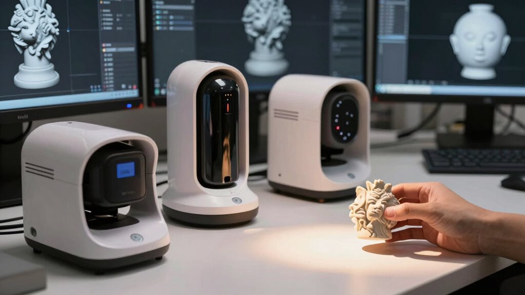 After exploring these top 3D scanners, I believe that choosing the right one truly depends on understanding your specific needs—whether it’s high precision, color accuracy, or portability. Notably, I’ve found that the theory of technological convergence suggests these devices will soon become even more integrated, making digitizing crafts and artifacts more seamless than ever. Embracing this tech not only preserves artistry but also propels creativity into the future.