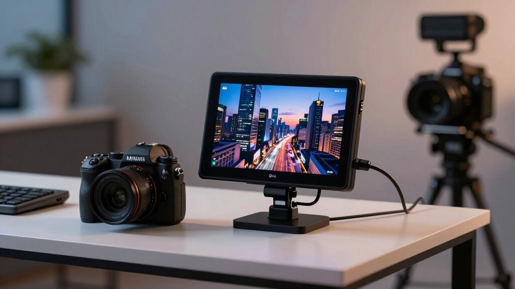 You’ll want to verify your 4K monitor recorder is compatible with your mirrorless camera’s output. I always check for supported video formats, HDMI or SDI connections, and whether the recorder can handle the camera’s resolution and frame rates. Also, verify that the recorder’s firmware supports your camera model. Compatibility is key to seamless recording, so I double-check specs before making any upgrades.