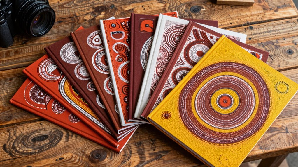 For anyone enthusiastic to deepen their understanding of Indigenous Australian culture, this collection of the 13 Best Aboriginal Art Books offers a compelling starting point. Dreamtime stories are the foundation of their spiritual worldview, explaining creation, natural phenomena, and cultural origins through legends of beings like the Rainbow Serpent and the Seven Sisters. These stories are passed down orally, painted on rocks, and embedded in ceremonies. Ancestral beings and spirits shape land, morality, and community life, with elders serving as custodians of this sacred knowledge. Exploring these themes reveals the profound connection between Dreamtime mythology, art, and environmental harmony that defines Indigenous Australian identity.