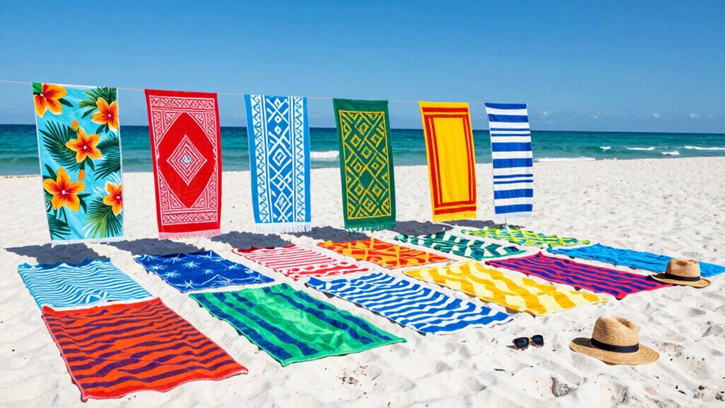 Looking for the best beach towels for 2026? I’ve found top picks that combine premium materials like Turkish cotton and microfiber for softness, absorbency, and quick-drying features. Sizes vary from compact to oversized, perfect for lounging or family fun. Stylish designs and eco-friendly options also make the cut. If you want comfort, durability, and great value, keep exploring — there’s plenty more to discover that will help you choose the perfect towel for your beach days.