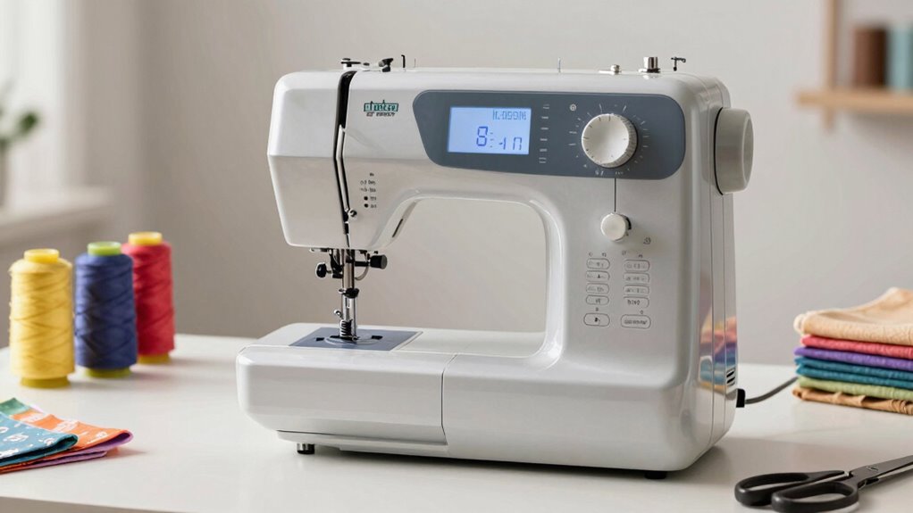 Built-in features substantially enhance a beginner sewing machine’s versatility and ease of use. With a variety of built-in stitches, ranging from 12 to over 70 options, you can tackle different projects with ease. Many machines include automatic buttonhole functions, making it simple to create professional-looking buttonholes without manual measuring. Features like automatic needle threaders and jam-resistant drop-in bobbins save time and reduce frustration for newcomers. Some models come with pre-programmed decorative stitches, allowing you to add creative touches without extra equipment. Additionally, built-in LED lighting illuminates your workspace, improving visibility and accuracy on detailed projects. These features streamline the sewing process, making it more enjoyable and accessible for beginners enthusiastic to learn and experiment.