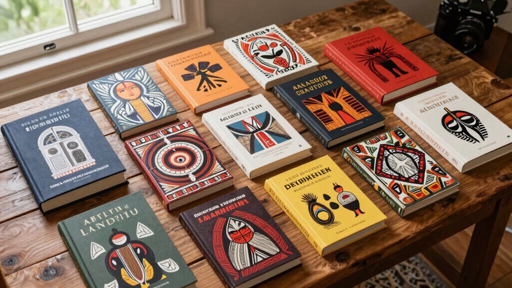 When choosing books on indigenous history, I look for accuracy, cultural sensitivity, and diverse perspectives. I prioritize works that include indigenous voices, oral histories, and storytelling traditions to guarantee authenticity. It’s also important to take into account the author’s background, the book’s impact on indigenous communities, and how well it educates without perpetuating stereotypes. These criteria help me select resources that are respectful, informative, and meaningful for educational purposes.