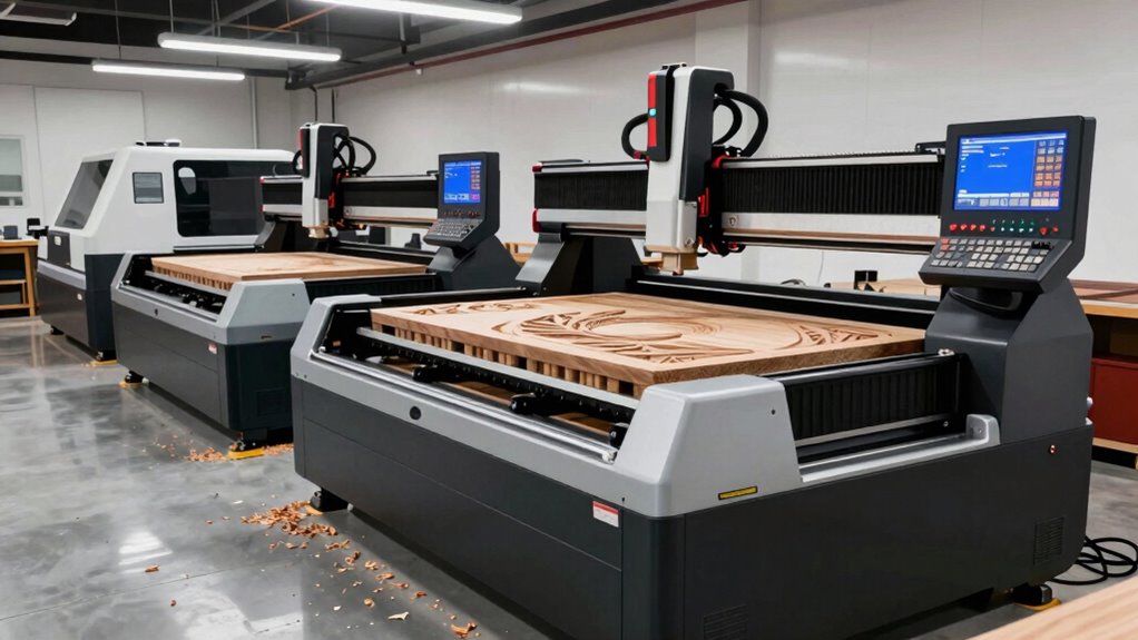 Think of software as the magic wand that brings your ideas to life. Most CNC routers are compatible with popular programs like Fusion 360, VCarve, and Mach3, which act like a conductor guiding your machine. These programs allow you to design intricate patterns and convert them into commands your CNC comprehends. I recommend checking your specific machine’s compatibility list to guarantee seamless integration, making your creative process smooth and enjoyable.