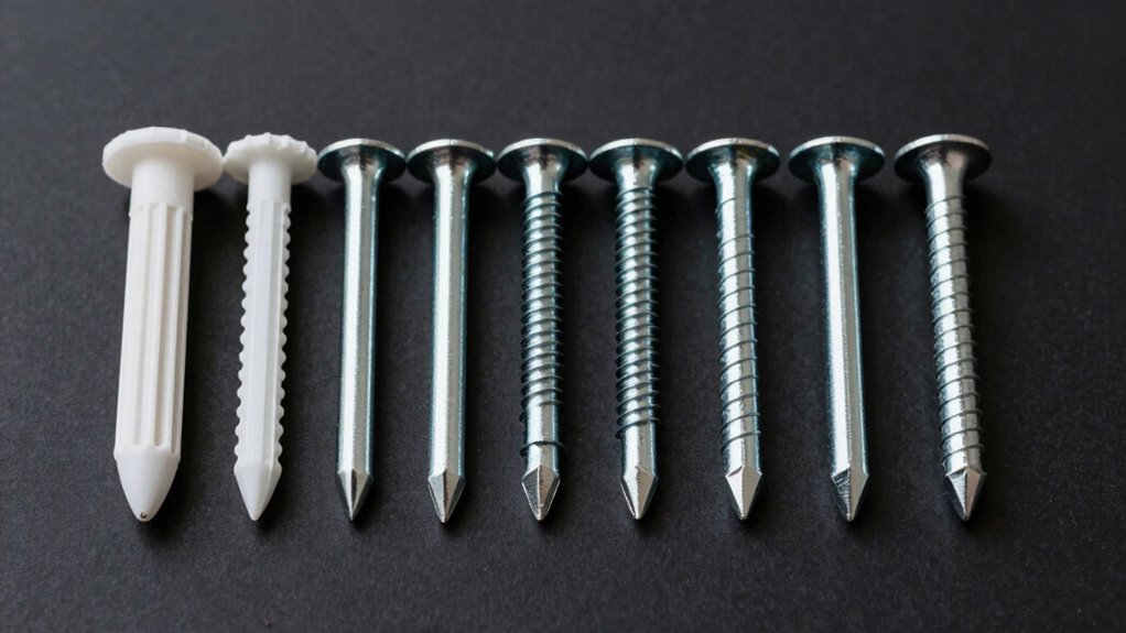 Selecting the right drywall anchor depends on several key factors, including the weight of the item you want to hang, the wall’s material, and whether you need a temporary or permanent solution. There’s a variety of anchor types designed for specific needs. Plastic expansion anchors are perfect for lightweight items, while metal toggle or self-drilling anchors support heavier loads. The wall material influences your choice—some anchors work better in hollow walls, others in solid drywall. Self-drilling anchors are convenient because they don’t require pre-drilling, making quick work of installation. This variety allows you to customize your choice based on project requirements like weight, wall thickness, and permanence. Understanding these options helps guarantee you select an anchor that’s both strong and reliable.