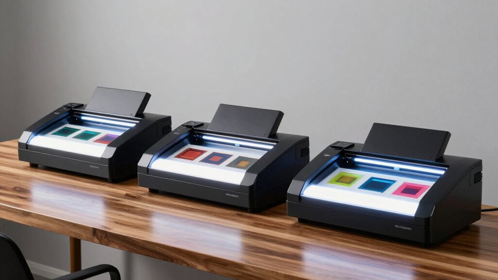 Transparency scanners handle different film formats by offering adjustable settings and multiple film holders. I find that they come with specific adapters for formats like 35mm, medium format, or large sheets. I simply select the appropriate setting or insert the right holder, which guarantees accurate color, resolution, and detail. This flexibility makes it easy for me to digitize various types of film without hassle.