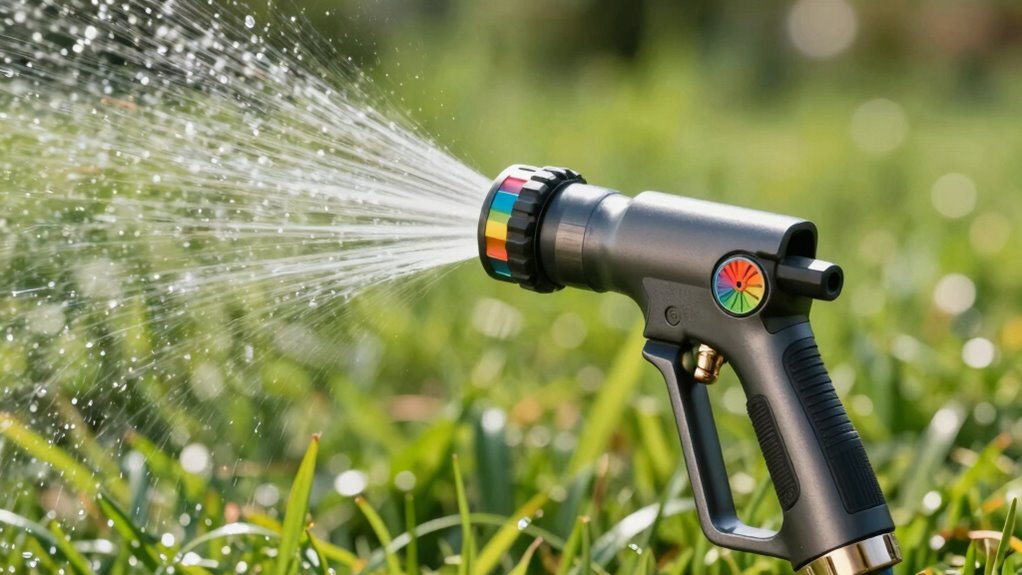 When selecting a hose nozzle, ease of use is key to making watering tasks more comfortable and efficient. I look for intuitive controls like thumb or thumb-style triggers that allow me to manage water flow effortlessly. Adjustable spray patterns that switch easily with twists or dials save time and hassle. Features like lock bars or continuous flow mechanisms help me water longer without tiring my hand. An ergonomic design with cushioned grips and well-placed controls prevents slipping and reduces strain during extended watering. Clear markings or indicators for spray modes and pressure settings make adjustments quick and straightforward. These features ensure I can operate the nozzle comfortably, maintain control, and complete my watering chores with less effort and frustration.