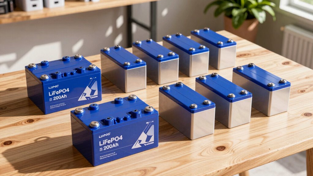 In choosing a LiFePO4 200Ah battery for your off-grid system, it’s essential to take into account factors like cycle life, built-in BMS, and Bluetooth capabilities. I’ve found that investing in a quality battery can greatly enhance your energy independence and efficiency. The theory that all batteries are the same just doesn’t hold up; the right choice can make all the difference in performance and longevity. So, take the time to research and choose wisely for your needs!