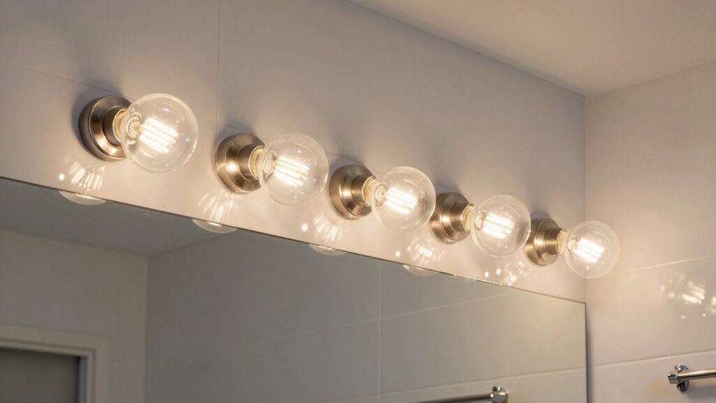 Vintage-style LED bulbs are quite energy-efficient, often using 80% less power than traditional incandescent bulbs. I love how they combine nostalgic looks with modern tech, saving me money on electricity bills. They last longer too, reducing replacements and waste. If you’re aiming for a retro aesthetic without sacrificing energy savings, these bulbs are a great choice, offering both style and efficiency in your bathroom lighting.