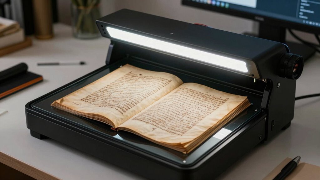 If you think finding the perfect overhead book scanner is tough, wait until you see what’s out there—these models will revolutionize how you preserve your most fragile texts! With the right scanner, you’ll be able to digitize ancient manuscripts or delicate pages without a hitch, keeping history alive for generations. Don’t settle for less—these scanners are so advanced, they might just make your old books feel like brand new treasures!