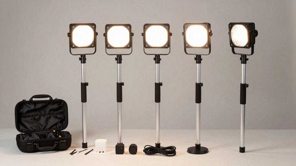 With so many great options like the NEEWER and Amazon Basics kits, choosing the right portable light stand really depends on your crew’s needs. Did you know that lightweight stands can reduce setup time by up to 30%? Investing in the right kit not only boosts efficiency but also guarantees your shoots stay smooth and professional. So, take your time, consider the factors, and pick the one that’ll help you shine brightest on set.