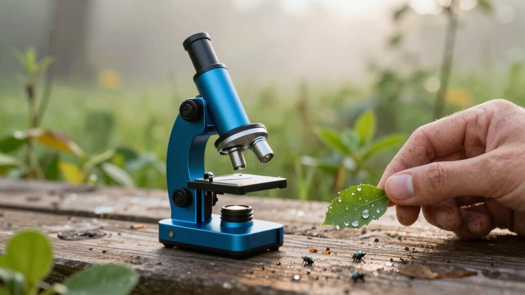 When selecting a portable microscope for field biology, I consider several key factors to guarantee it meets my needs. Things like magnification flexibility, illumination options, and size can greatly impact usability in the field. Additionally, I look at battery life and how easy it is to adjust focus, so I can work efficiently in various conditions.