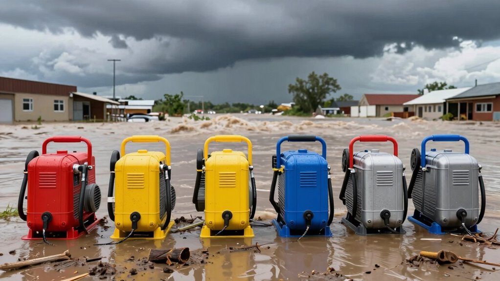 If you’re looking for the top portable water pumps for emergency flooding in 2026, I recommend options like a 1/2 HP submersible pump with a 2-inch outlet, our reliable Westinghouse 1/4 HP model, and the BorealBear 1/4 HP sump pump for heavy debris. For larger jobs, the FluentPower 3/4 HP and LANCHEZ 1 HP pumps are great choices. Keep in mind the features that suit rapid response and durability—there’s more to contemplate if you want the best flood rescue tool.