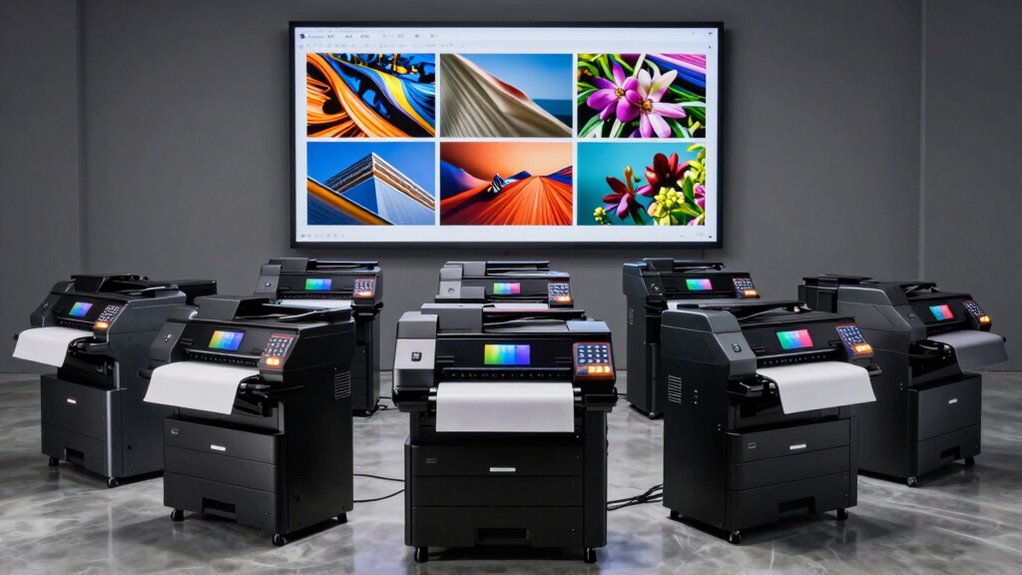 Absolutely, these printers support custom color calibration, allowing you to fine-tune colors for perfect archival quality. Think of it as having a painter’s palette at your fingertips, giving you control over every hue. I’ve found that this feature is essential for ensuring your prints stand the test of time while maintaining true-to-life colors. It’s like giving your artwork a personal signature—precise, consistent, and beautifully preserved.